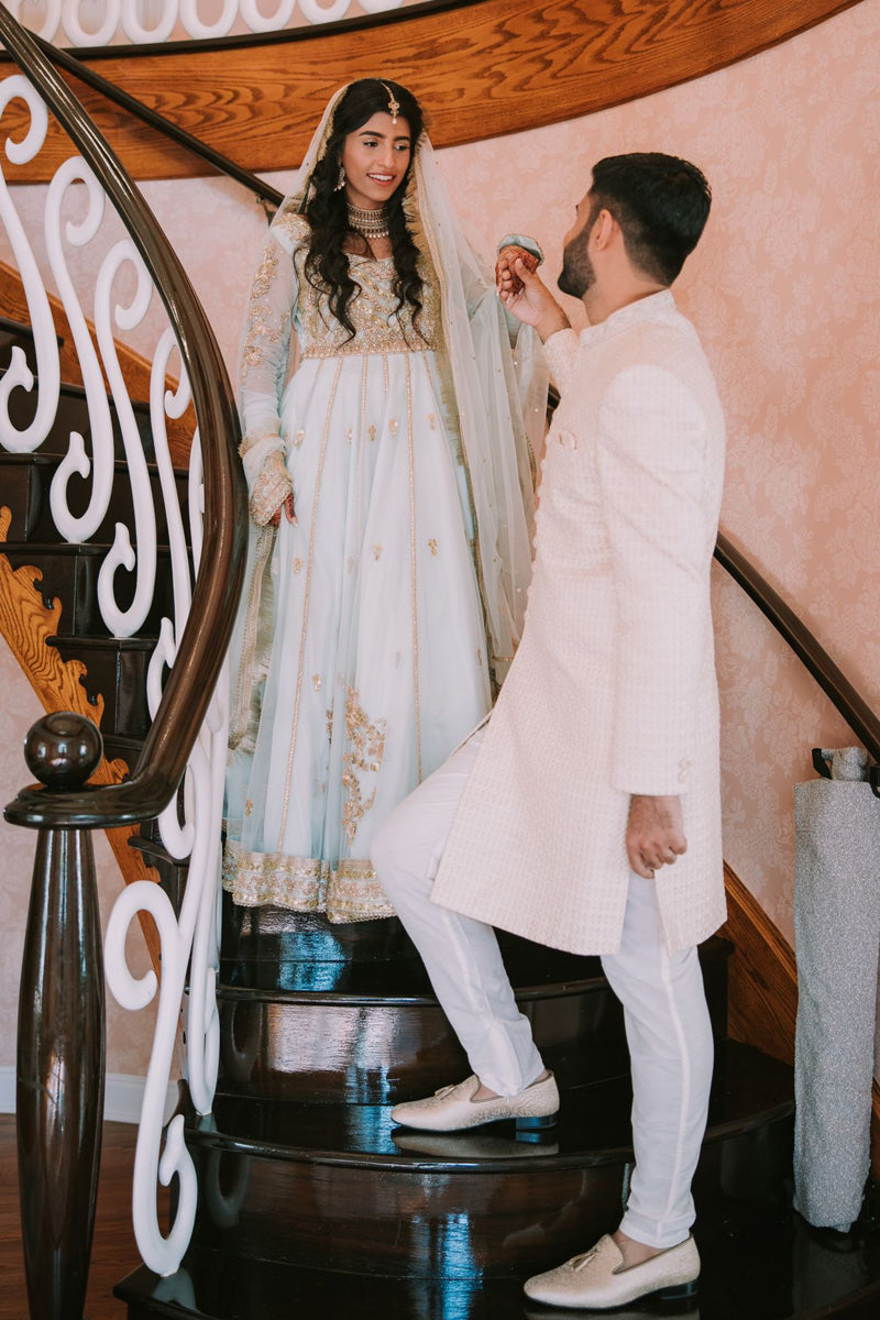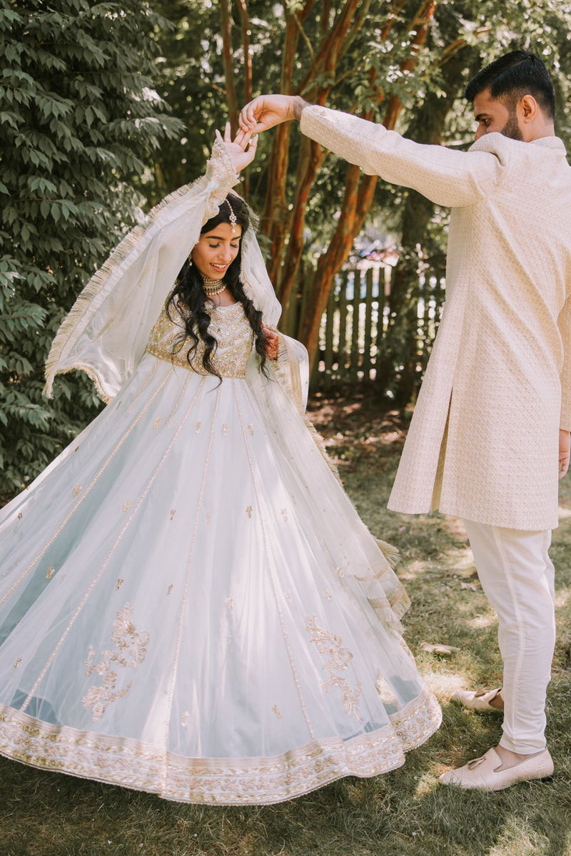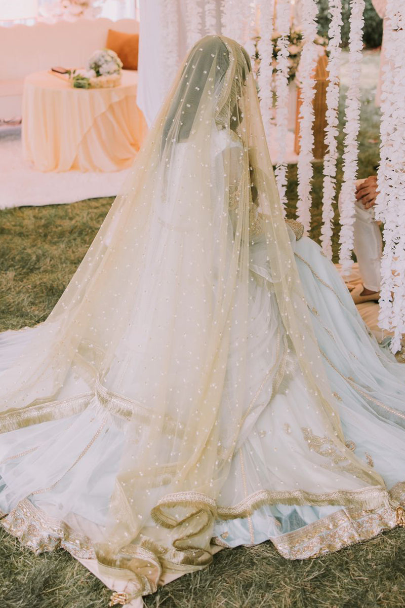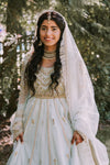 Net Peshwas richly embellished with gota zari, dapka, sequin and nakshi