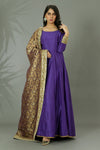 Dupatta fabricated on rich banarsi embellished in the most charismatic way. The one-color attire with the banarsi dupatta is giving a phenomenal look. Indian raw silk gown.