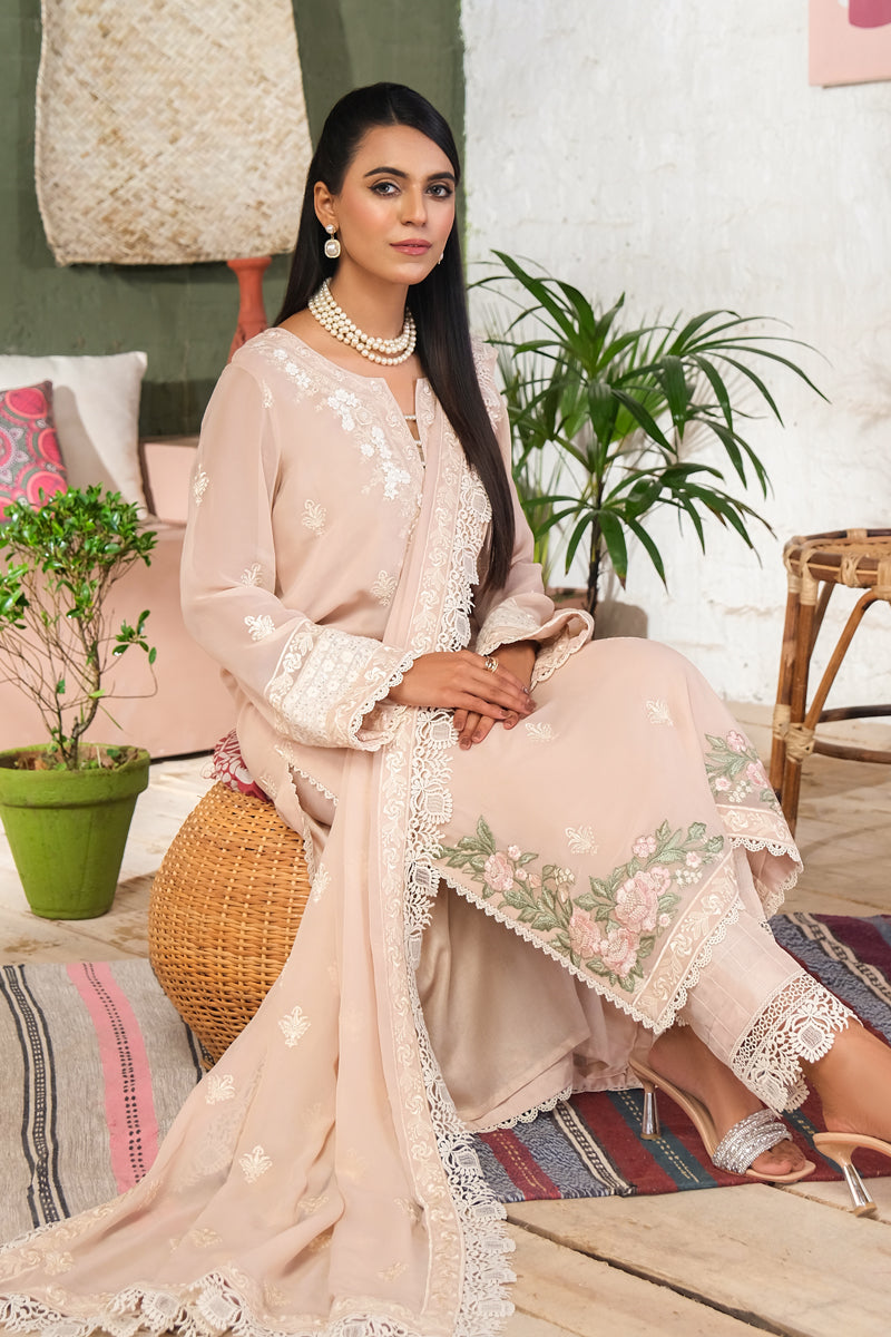 - Chiffon georgette shirt with intricate embroidery in Chikankari style