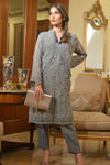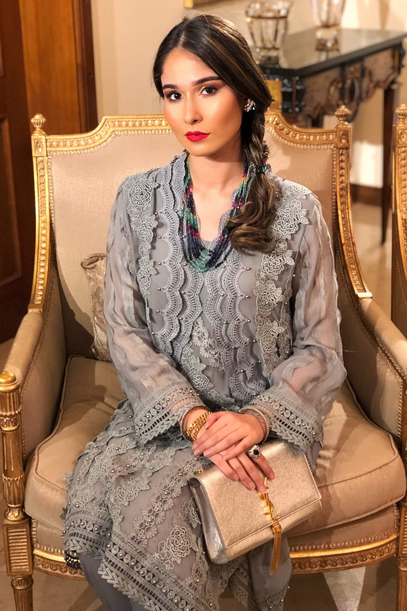 This geometric ensemble of laces personifies both precision and skill in its design and creation. Its grey hue gives it a grounded appeal that enhances the beauty of its intricacy.