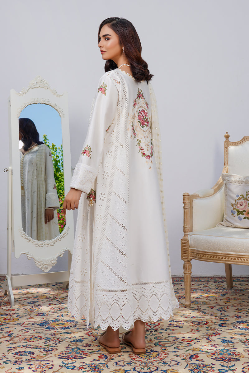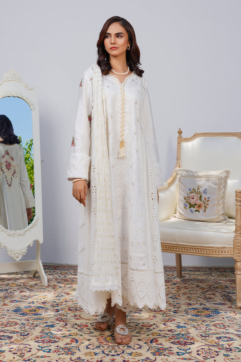 Indulge in the timeless elegance of our Chickan & Chikankari Kurta featuring exquisite rose motif details. With our Raw silk pants, offering a luxurious texture and a sleek, tailored fit. To add a touch of ethereal grace, drape yourself in our crushed Cotton dupatta, which lends a delicate and breezy feel to your look.